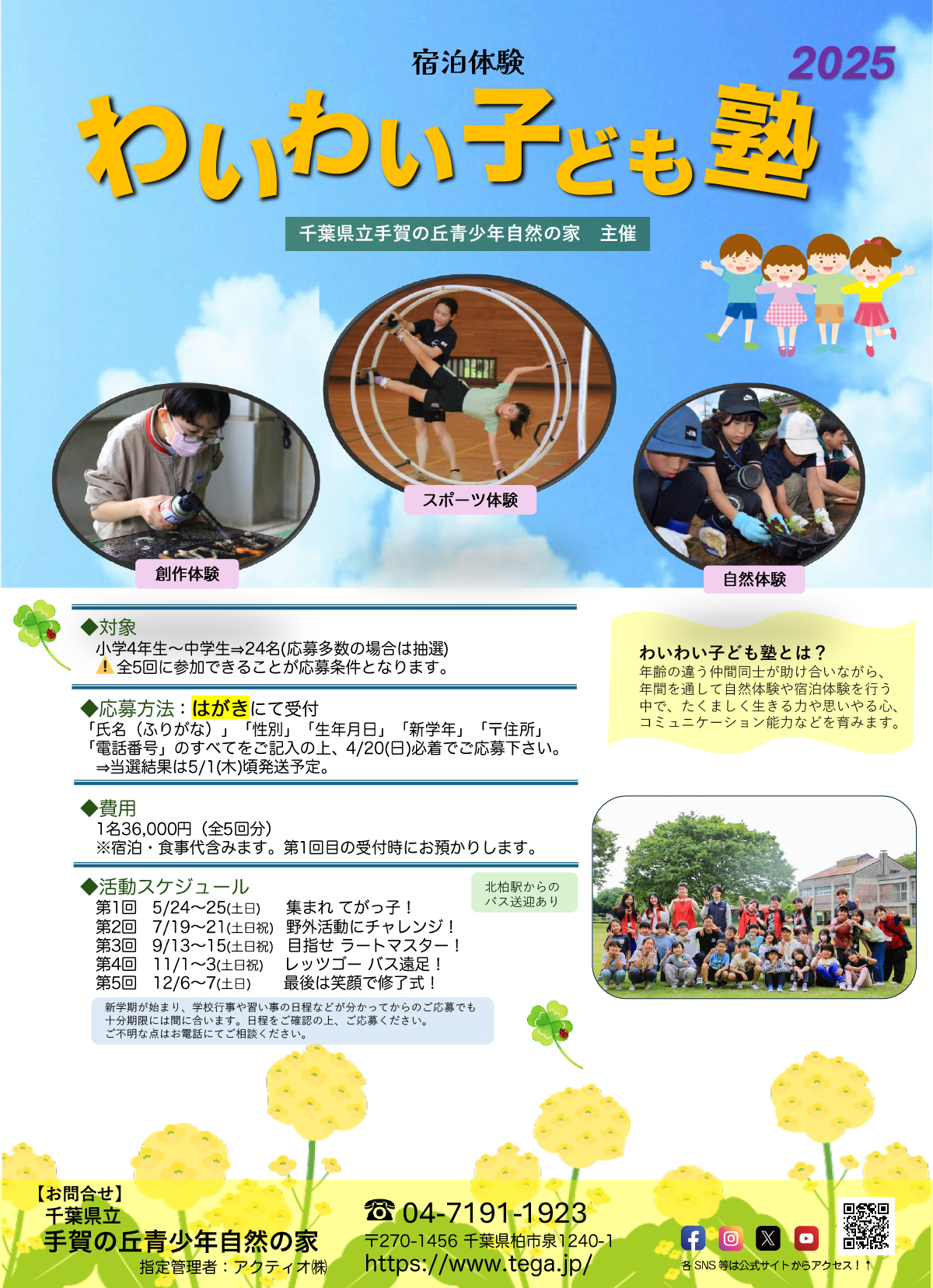 小学4年生~中学生を対象とした宿泊体験イベントのお知らせです!
