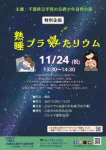 プラネタリムの特別企画として、「熟睡プラ寝たリウム」を開催します。